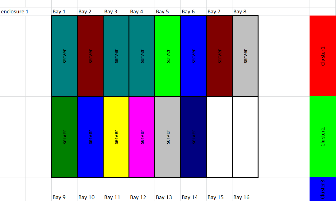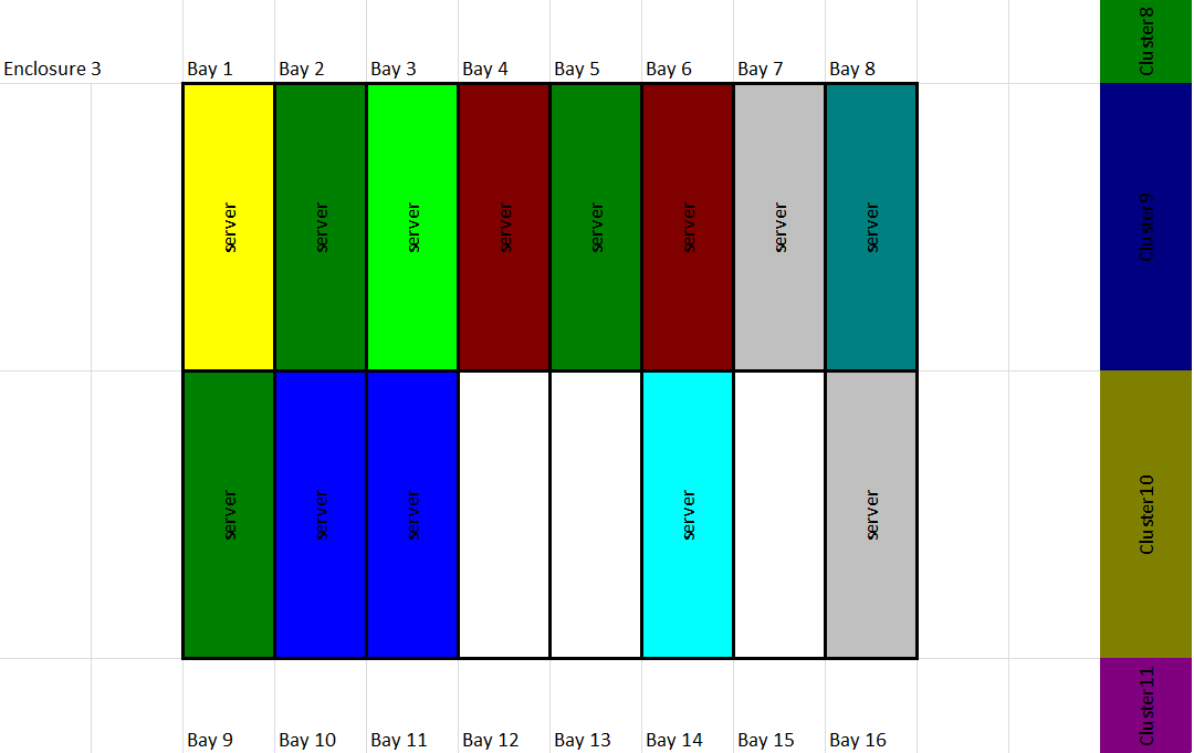 So i created this script to get an overview how the blades were place in the enclosures in regard to the cluster the blade is in - That helps me some times realize that placement of a blade is wrong and it makes planning of server deployment easy, in order to avoid putting all our eggs in one basket.