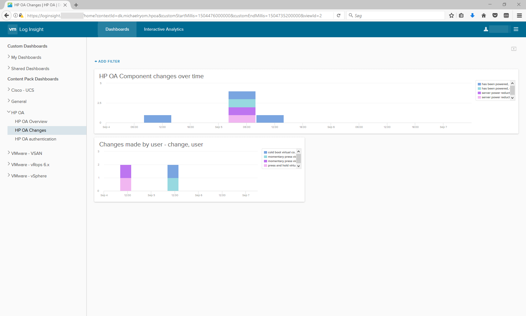 The content pack I created needs to have HPE Onboard Administrator sends its log to Log Insight. This is quite easy to setup, all you need is to point the syslog settings in HPE OA to the Log Insight.