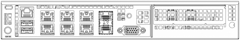 This diagram clearly shows how the ports are layout at the back of the E300-8D. What it does not show is that next to the VGA port is a slot for a horizontal PCI-E card. In order to use the slot a riser card is needed.