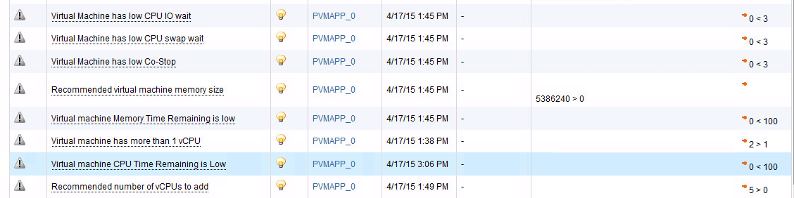As it can be seen above, there is a few more columns to look at, the last one is the I am going to focus on. Note the two lines with the CPU and memory recommended - It clearly state how much vCPU and memory the VM should have. Since we have already learned that it a CPU/memory demand issue and the host doesn't seem to be the blamed. We have a solution. Add the needed resources and it should start behaving again.