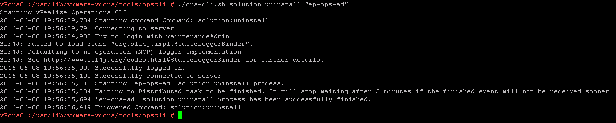 $VMWARE_PYTHON_BIN /usr/lib/vmware-vcops/tools/opscli/ops-cli.py solution uninstall "ep-ops-ad"