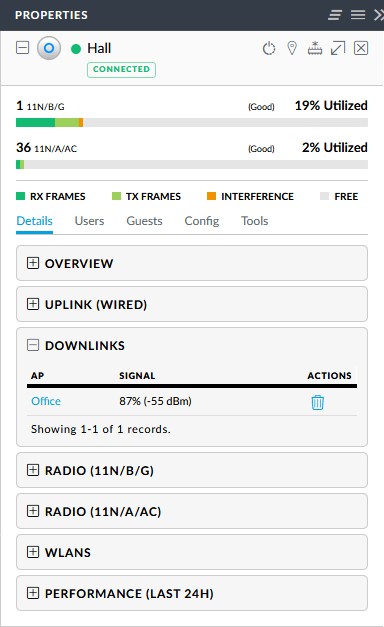 There is an equally simple way to verify that the wireless bridging has succeed. On the details tab of the AP there is an uplink or downlinks section. Here you can verify that you are indeed are connected and data such as signal strength are available.