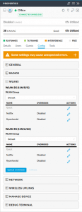 To disable access for other clients, I simply go to config, wlans and for each SSID for 2/5G, I click on action and remove the check mark from "Enabled on this AP" and click "save". Once done "queue changes" and apply them. Now the AP is provisioning the changes and after a reboot (I presume), it will be back up and serving only as an wireless bridge.