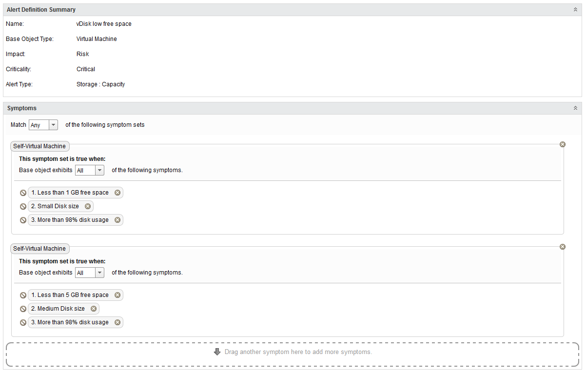 vRops Symptoms & Alerts - Disk usage - Wrap up