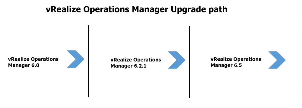 This is just a quick guide to the vRops upgrade path. I work a lot with vRops in different aspects. As of late I have been running in to a few environments which has not kept up with vRops's release cycle. Needles to say vRops has come a long way from 5.8 or 6.0. Last week vRops 6.5 was release and once every quarter(or so) a new release will come out. In that sense, it is good to know how to upgrade from one release of vRops to the next or more so to the latest.